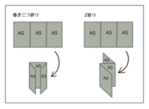 A4サイズ仕上がりの二つ折り(折りたたんだ状態がA4サイズ)、
